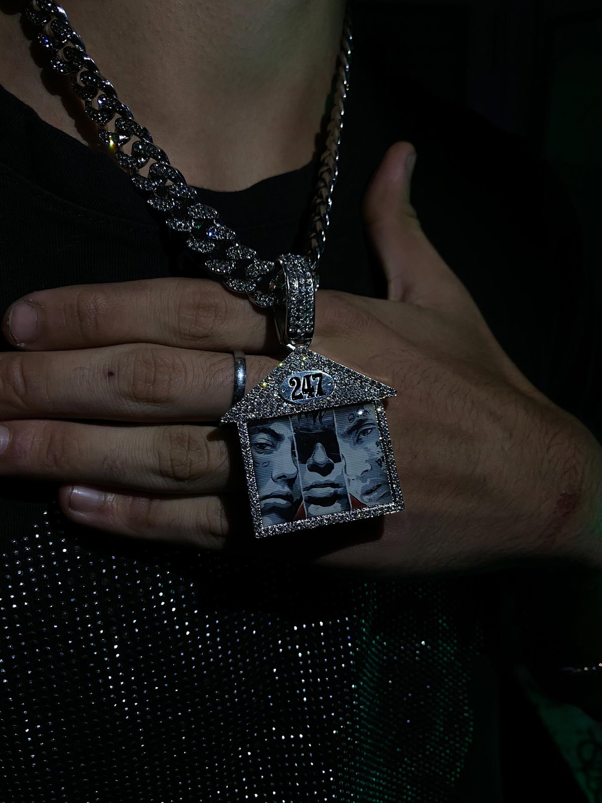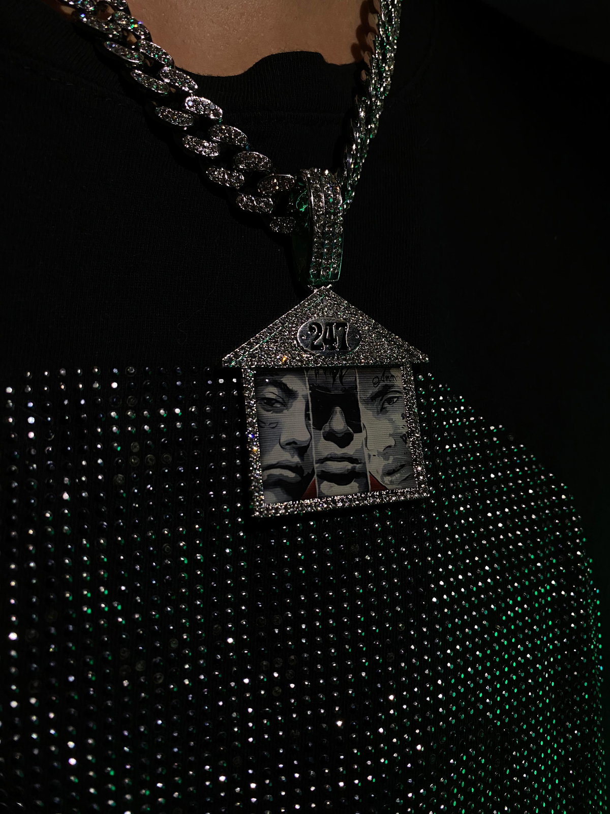 Dije en fundicion con incrustaciones + cadena con diamantes