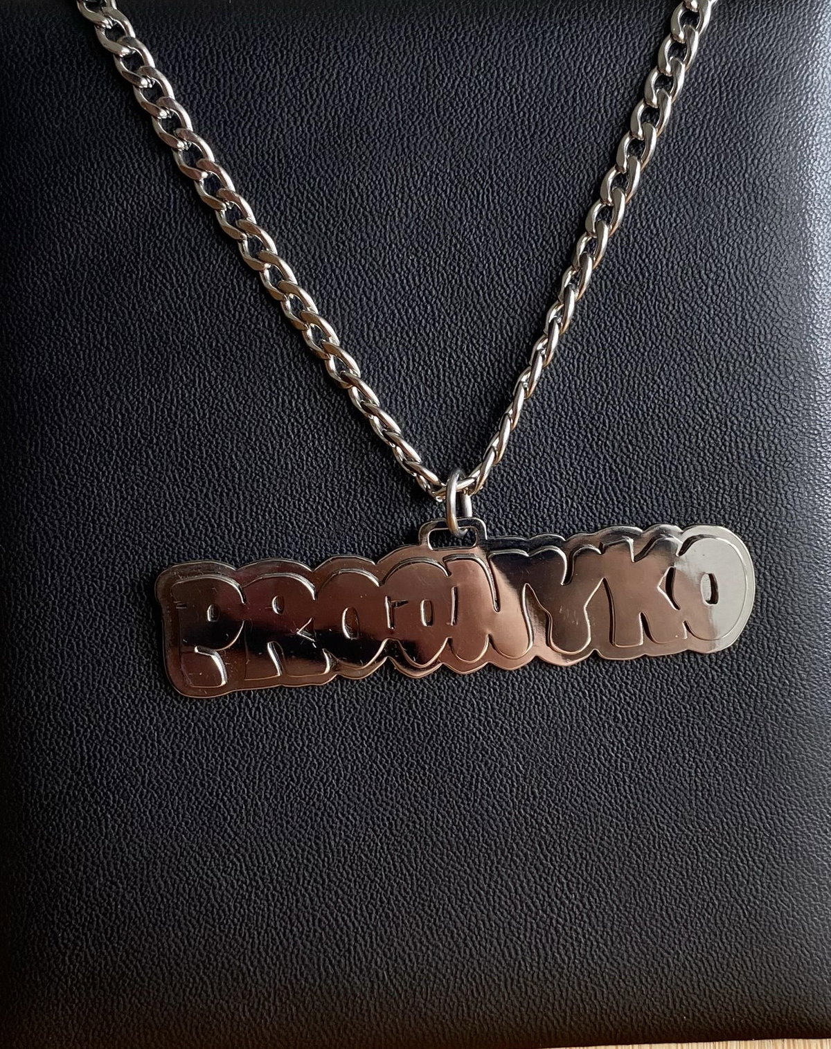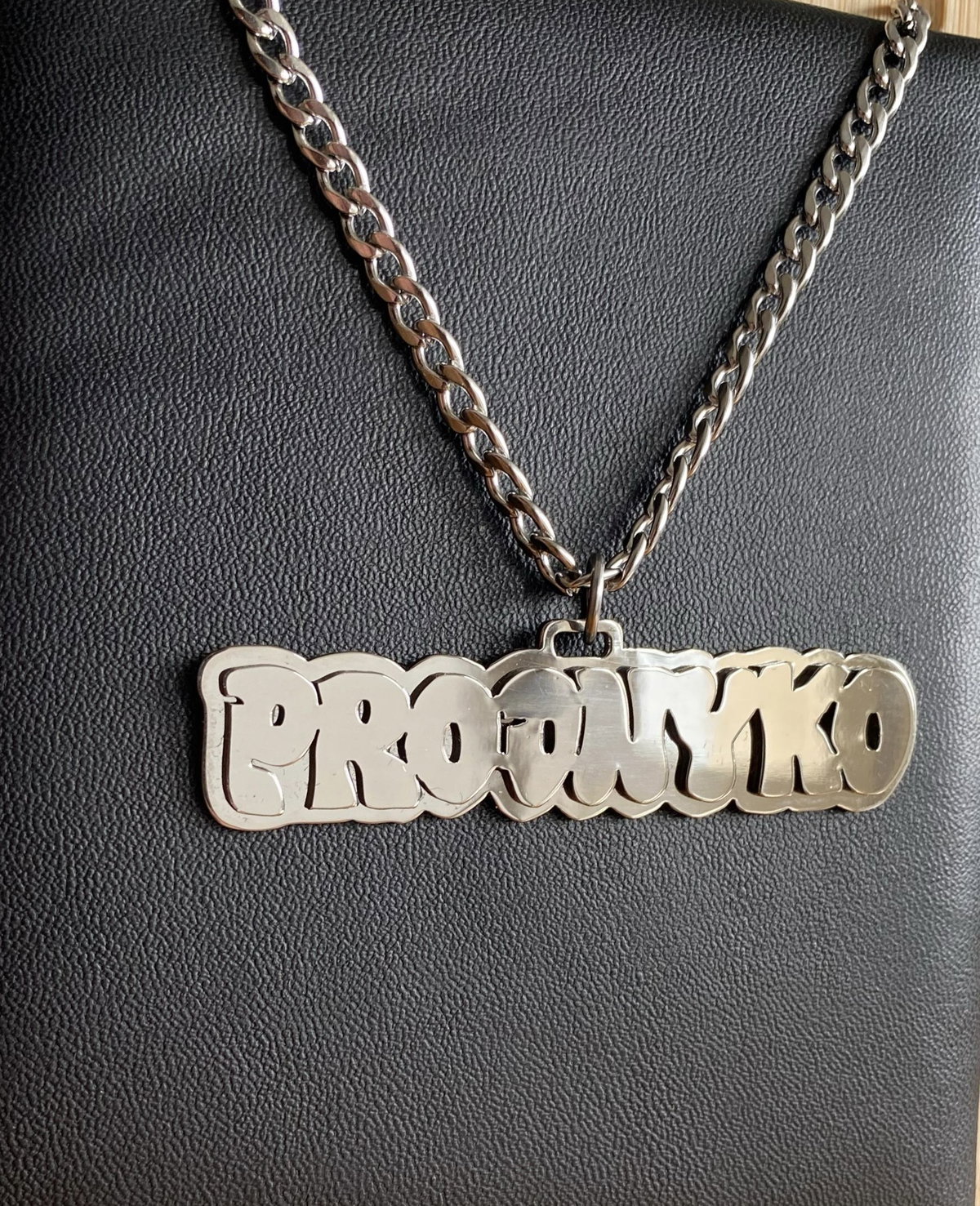 Dije personalizado en acero con relieve! Medida de 8x4 cm aprox con cadena de regalo!